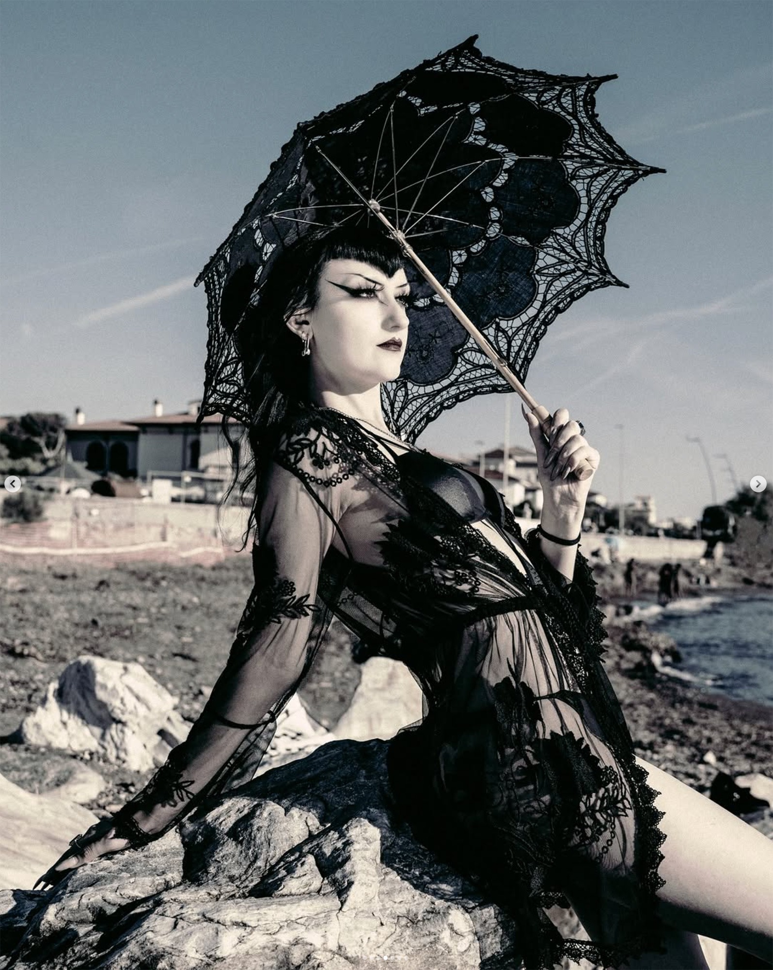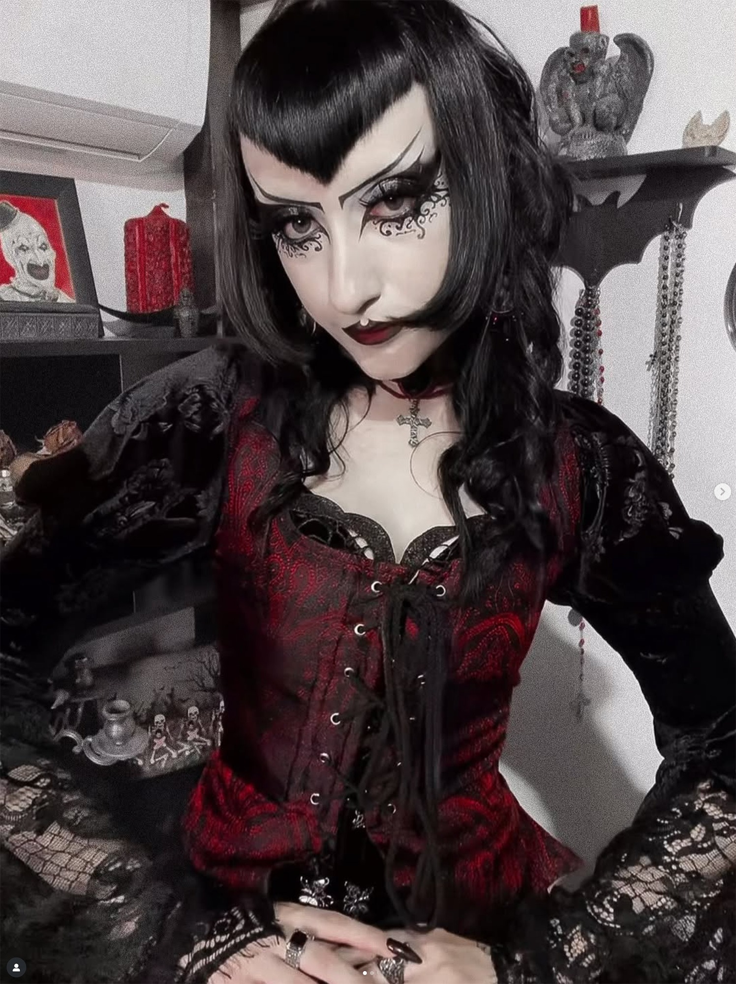 Vampyr Grave is a pretty one and I love her makeup and style! She is a makeup artist anyway and I love that skill as well! It just kinda makes her beauty more tantalizing to look at. I had no problem with her clothing choices and she seems like she might be European, oh she’s Italian, now I just want to smell her feet, how yummy would that be? This is why I love Italian women so much!